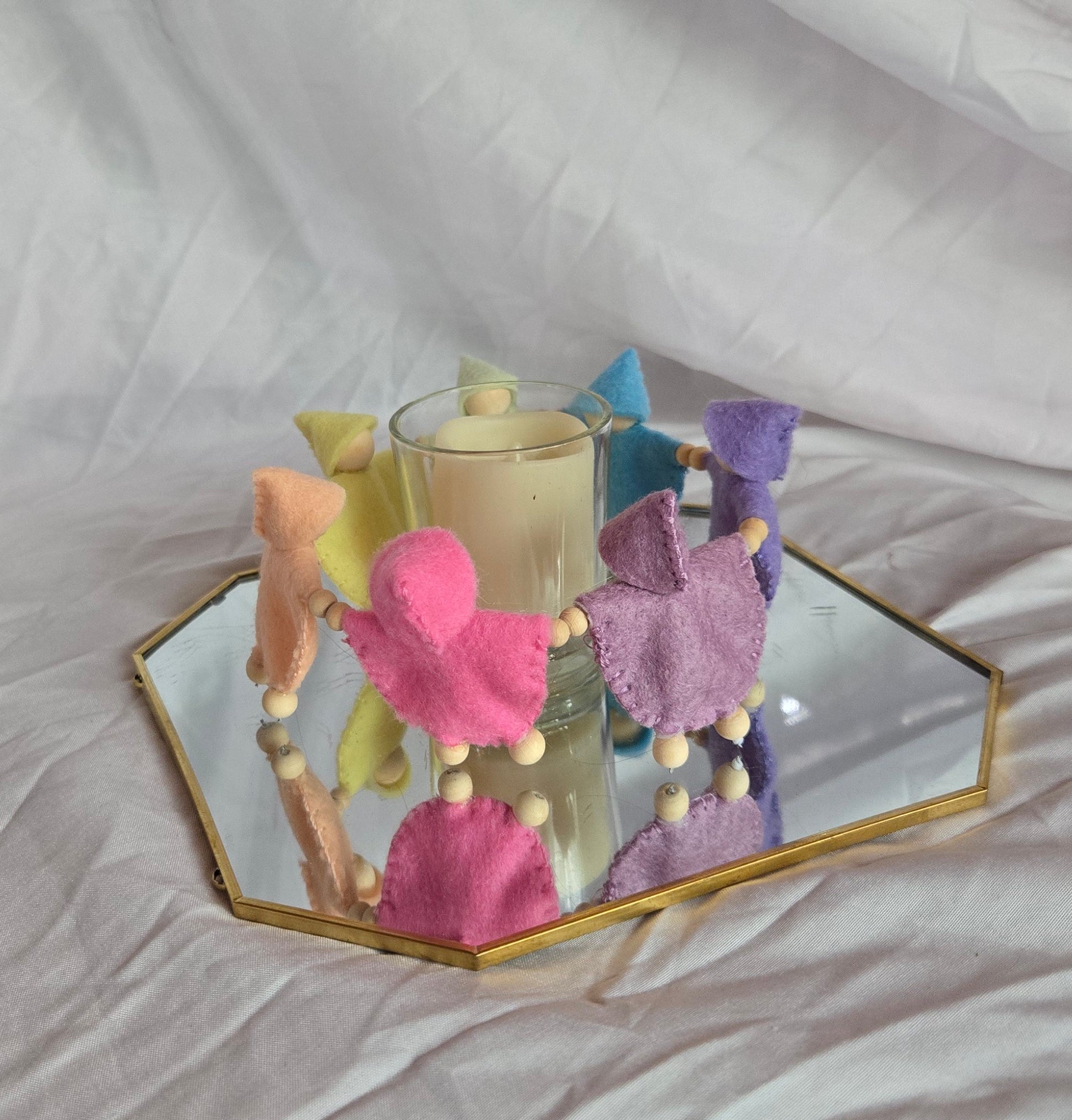 These adorable candle rings will be a conversation starter for any room. They are made with colorful mini sprites all holding hands to form a circle. They can be used with pillar candles as well as votives. (candles not included) This pastel ring says spring is here!